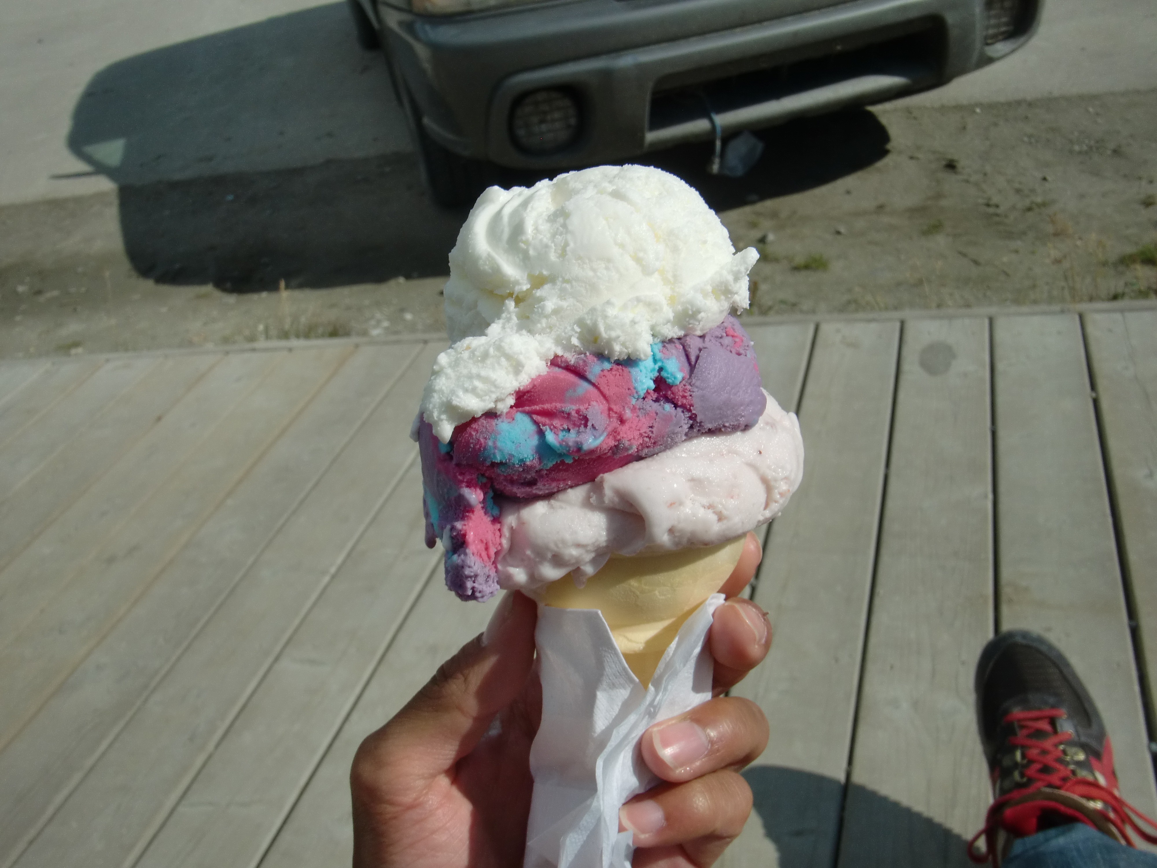 ↑3スクープのアイスを頼みました。周りの親が子どもに